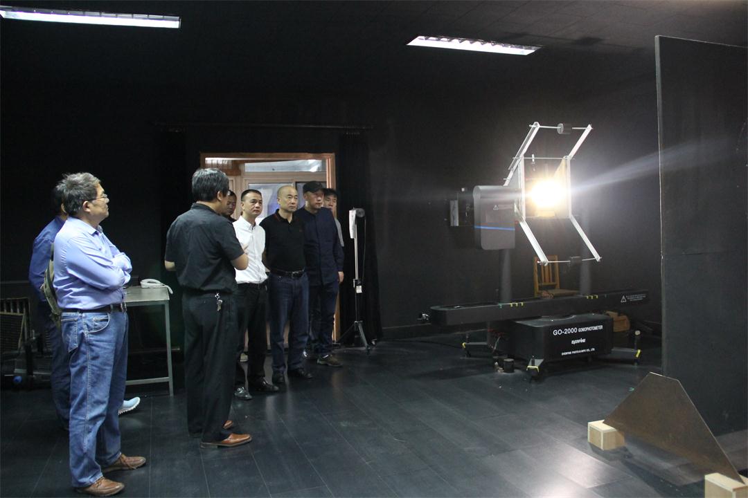 星光影视研发部经理陈阔家现场演示了自动化在线检测与标定系统,随着程控恒温箱的启动,灯具输出光色和亮度自动变换,电脑显示屏上光谱曲线等测试数据快速闪动,很快就完成了一台LED灯具的自动检测和标定。系统的创新设计和检测效率得到了专委会专家的赞扬。