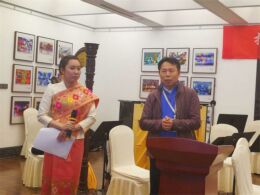 老挝国家交响乐团领队杜昂阐·帕玛奇代表全体团员发表学习心得,并向参与本次培训计划的单位和个人赠送了老挝的传统礼物以示友好。