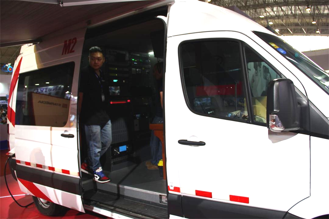 在星光影视的展台现场,最引人关注的则是和星拓视联合作推出的户外体育转播服务。现场专用转播车及专业摩托车炫酷夺目。据介绍,跟拍摩托车在整个赛道中全程跟随在运动员左右,专用转播车在运动员的前面,在拍摄过程中跟拍摩托车上的摄像师可以近距离的拍摄运动员,并通过车载的微波系统将信号送达专用转播车上。专用转播车除了接收跟拍摩托车的无线信号外,还有三路有线信号,分别是车上前置云台摄像机、两台后拍陀螺仪摄像机。这四路信号组成专用转播车的信号源将信号送达总控系统。我们了解到,星拓视联户外体育转播服务为用户提供全套的设备和技术支持,从摄、录、编到传输、制作、播报、播出,能够快速将现场实况呈现到电视机前,满足用户的多元化需求。